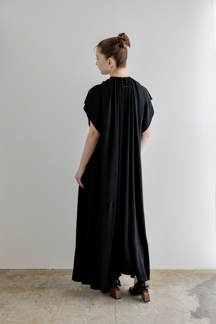 - ゴムが入った伸縮性のあるクルーネックからドレス全体に軽やかなギャザーが広がるMM6 Maison Margielaのマキシ丈ドレス。