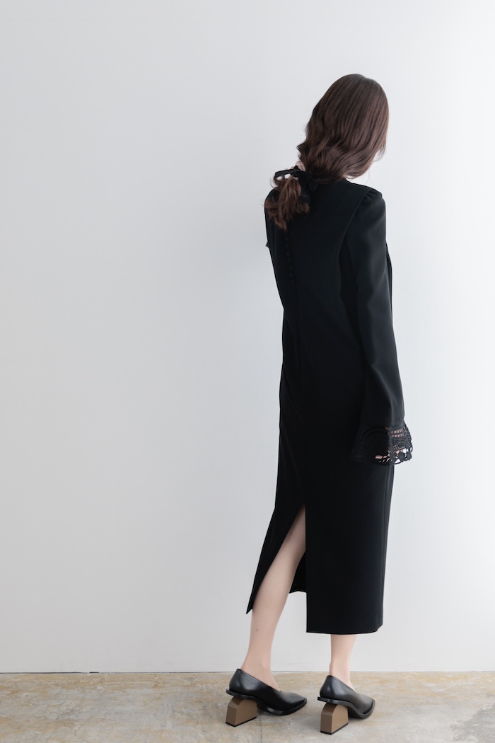 エレガントなスタイルとミニマルなムードを自在に往来できるドレスは、様々なオケージョンから厳粛なご卒業式への列席などにも。