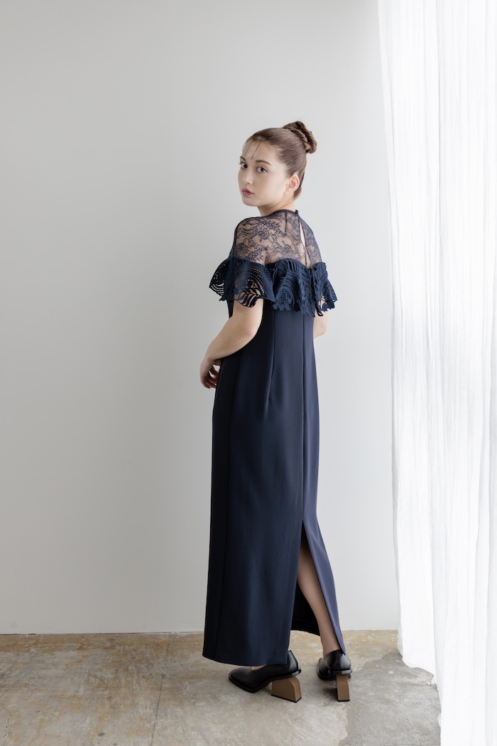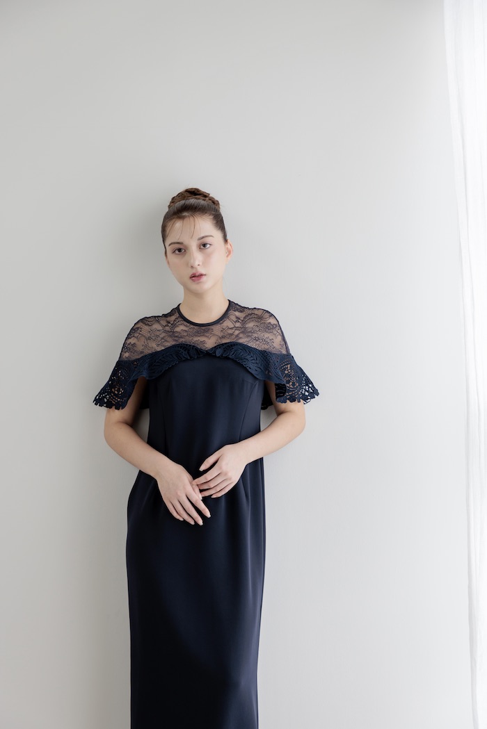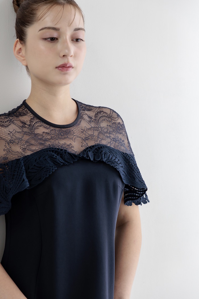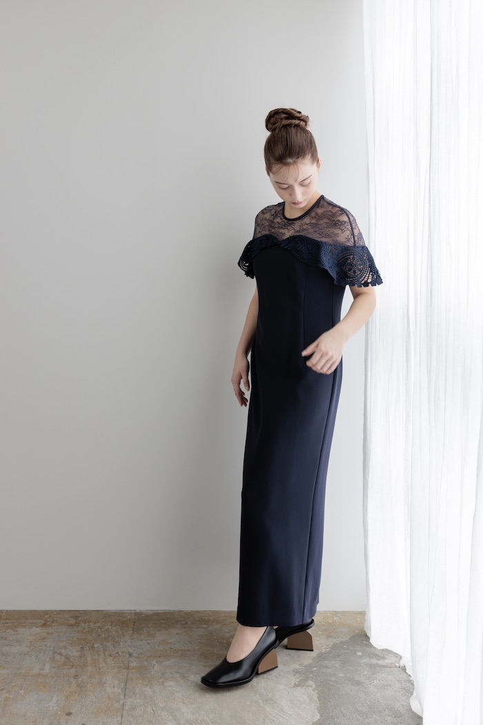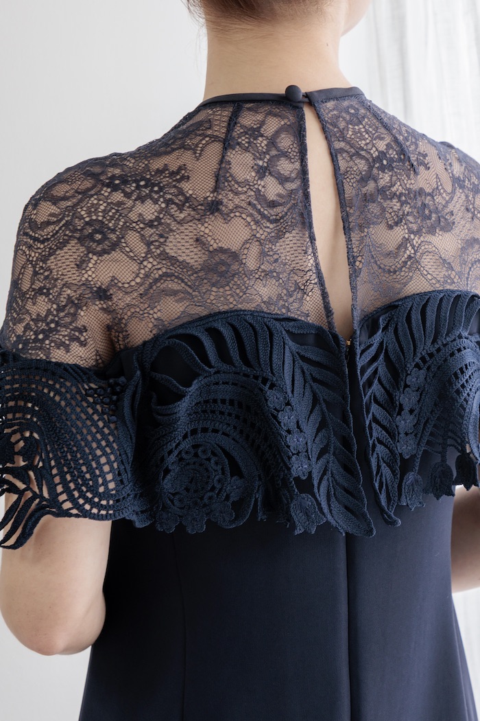 Mame Kurogouchi(3泊4日) Tulle Lace Classic Dress Navy