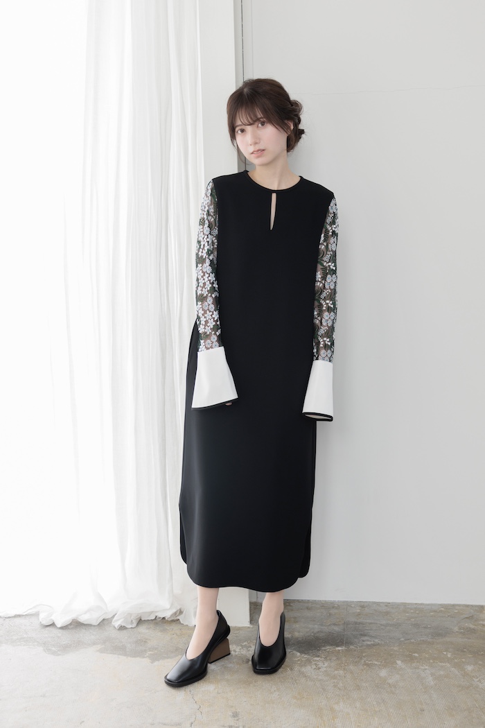 Mame Kurogouchi(3泊4日) River Lace Sleeve I-Line Dress